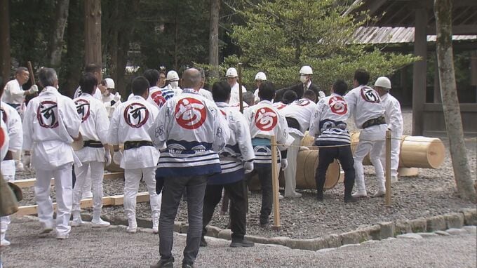 これから2年間にわたる式年遷宮の、本格的な「御木曳(おきひき)」行事の始まりが告げられました。