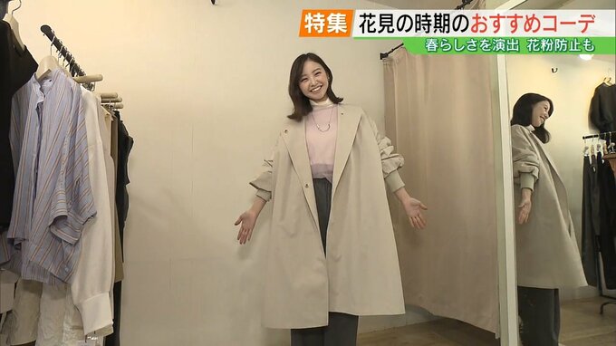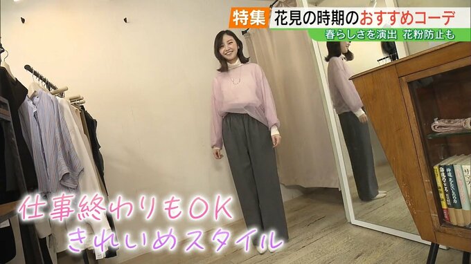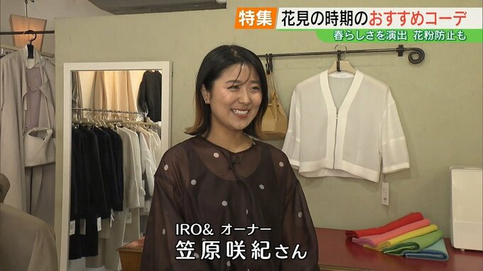 平岡沙理アナウンサー「寒暖差の大きい日が続いていて、服装に悩まれている方も多いと思います。お花見の時にはどんなコーディネートがいいのかIRO&(いろと)さんに教えてもらいます」