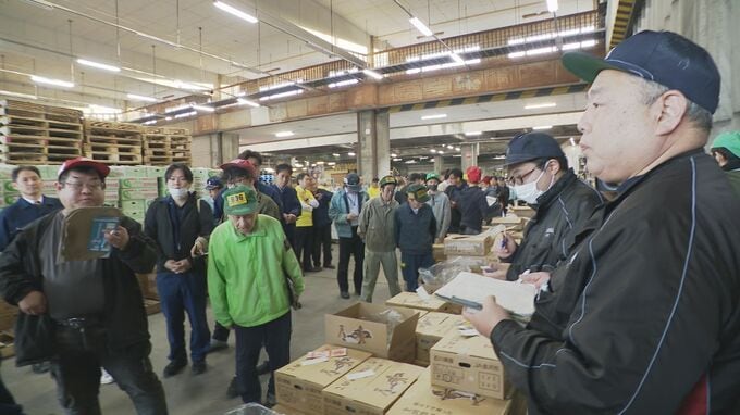 競りにかけられたおよそ1.7トンのタケノコは、最も高いもので表年としては例年並みの5キロ、6700円で取り引きされました。