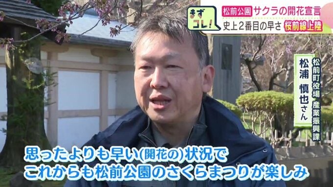 「思ったよりも早い状況で、これからも松前公園の桜祭りが楽しみですね」