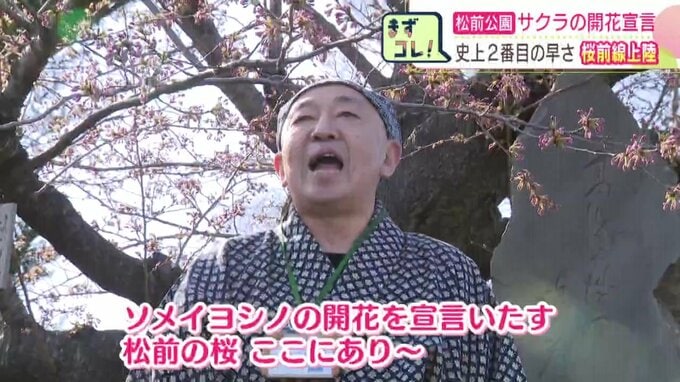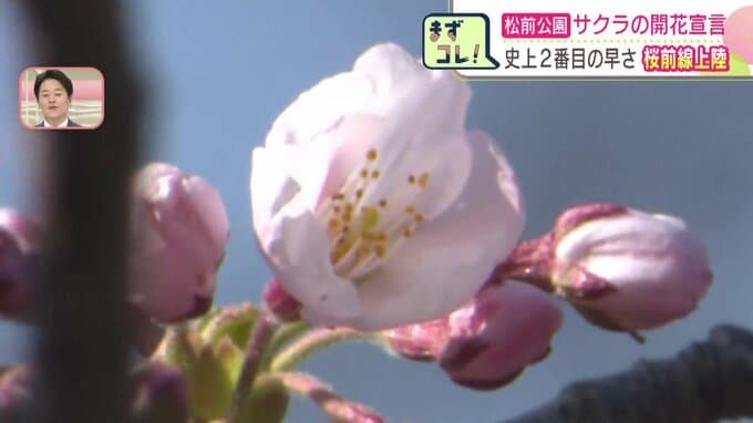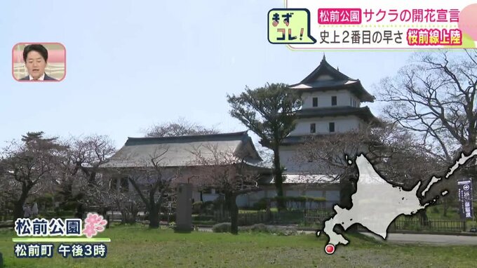 北海道南部の松前町で13日午後3時、桜の開花が宣言されました。