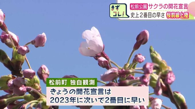松前町が町独自で観測を始めたのは1982年からですが、4月13日の開花宣言は2023年に次ぐ2番目の早さだということです。
