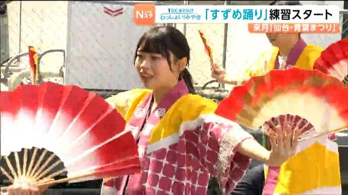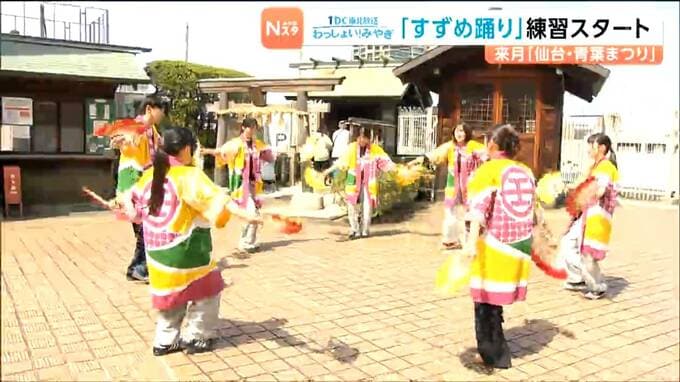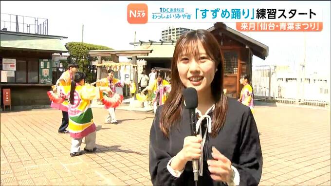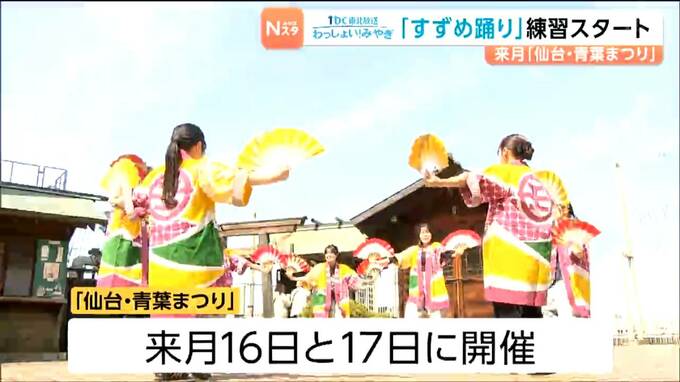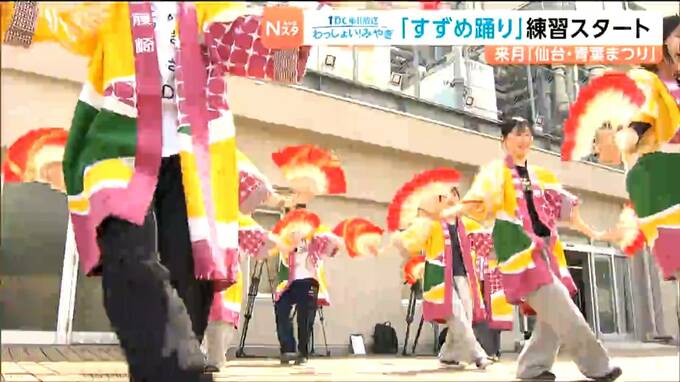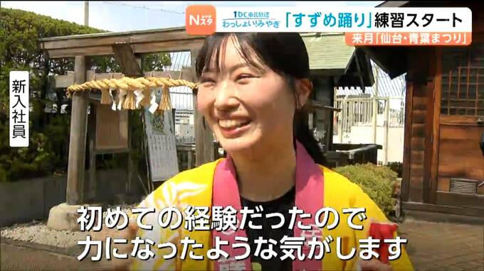 仙台市内の百貨店では、13日から新入社員らが、まつりで披露するすずめ踊りの練習をスタートさせました。