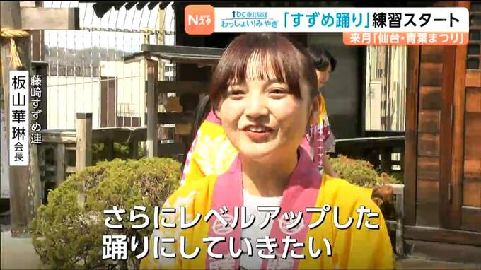 仙台市青葉区の藤崎では、13日からすずめ踊りの練習が始まり、この春入社した新入社員5人を含む13人が参加しました。