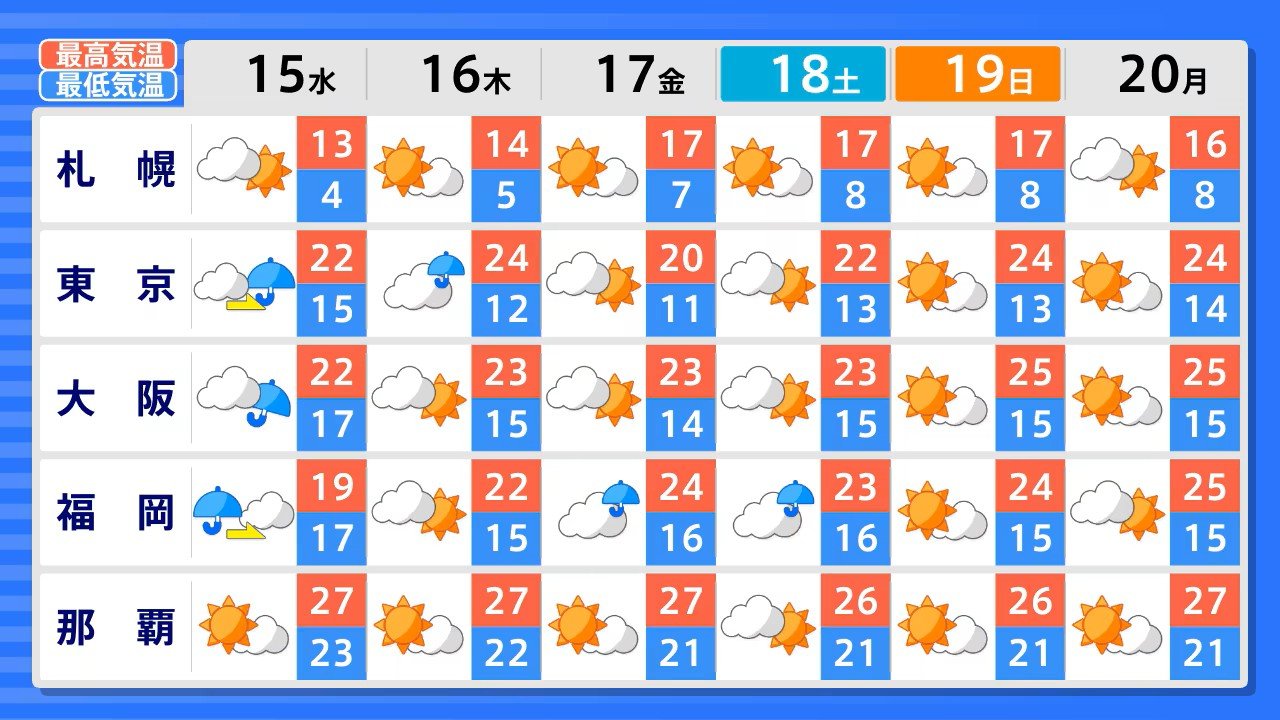 4月19日頃から、「この時期としては10年に1度程度しか起きないような著しい高温」となる可能性があります。