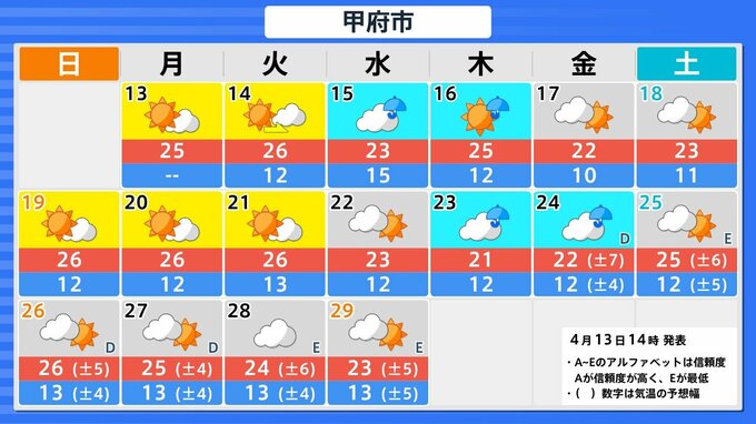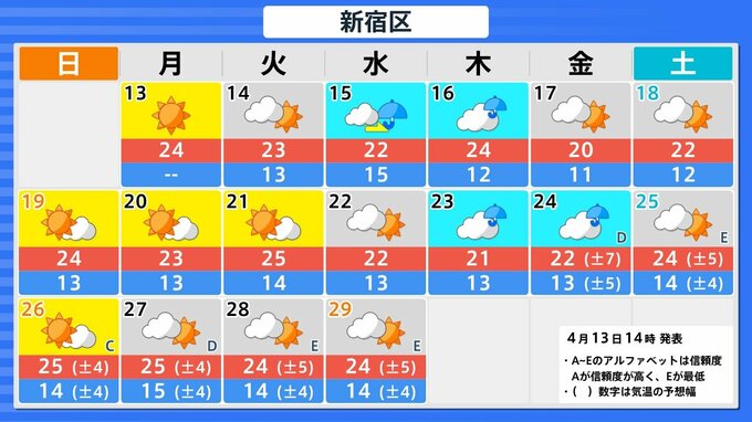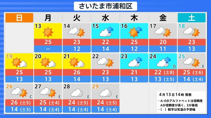 4月19日頃から「この時期としては10年に一度程度しか起きないような著しい高温」になる可能性 気象庁が「高温に関する早期天候情報」発表【東海、近畿、中国、四国、九州北部、九州南部】関東も平年より高い日続く予想 南日本放送 2026年4月14日(火) 06:00 国内 茨城県 埼玉県 千葉県 東京都 神奈川県 山梨県 長野県 栃木県 群馬県