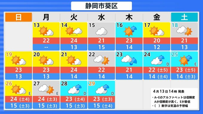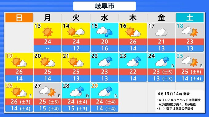 4月19日頃から「この時期としては10年に一度程度しか起きないような著しい高温」になる可能性 気象庁が「高温に関する早期天候情報」発表【東海、近畿、中国、四国、九州北部、九州南部】関東も平年より高い日続く予想 南日本放送 2026年4月14日(火) 06:00 国内 岐阜県 静岡県 愛知県 三重県