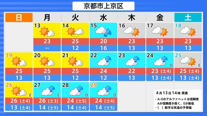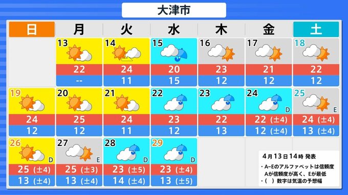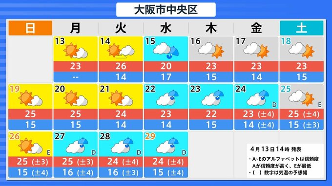 4月19日頃から「この時期としては10年に一度程度しか起きないような著しい高温」になる可能性 気象庁が「高温に関する早期天候情報」発表【東海、近畿、中国、四国、九州北部、九州南部】関東も平年より高い日続く予想 南日本放送 2026年4月14日(火) 06:00 国内 滋賀県 京都府 大阪府 兵庫県 奈良県 和歌山県