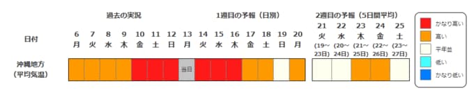 沖縄地方では、16日ごろまでかなり高い日が続きますが、17日ごろからは、平年並みか高い日が続きます。