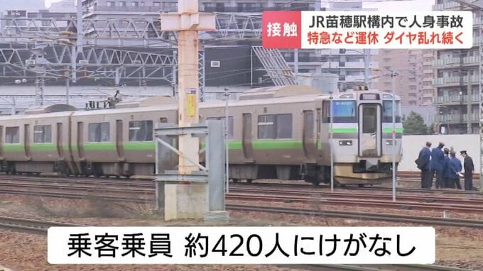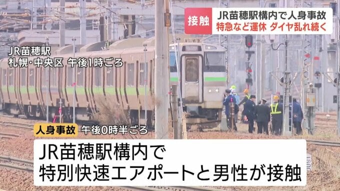 午後3時現在、13日午後0時半ごろ、札幌市中央区のJR函館線・苗穂駅構内で新千歳空港行きの特別快速エアポートと人が接触しました。