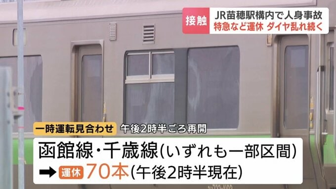 この影響で、函館線と千歳線の一部区間は約2時間にわたり運転を見合わせ、これまでに特急や快速列車など70本が運休しました。