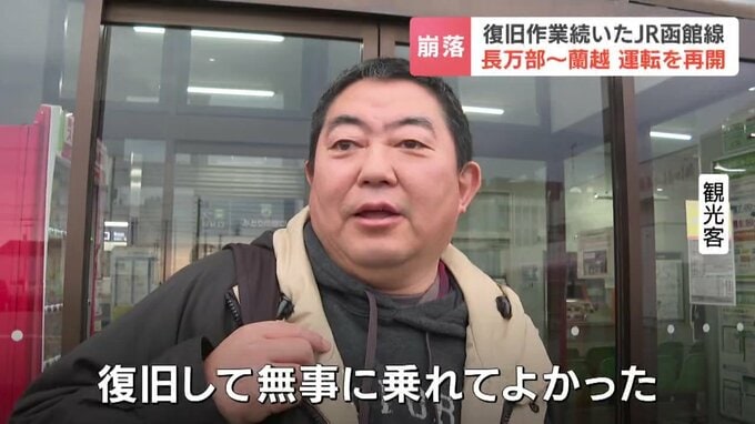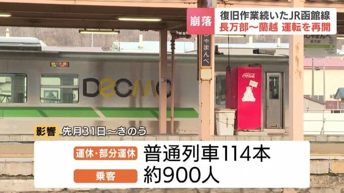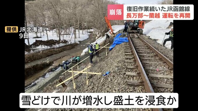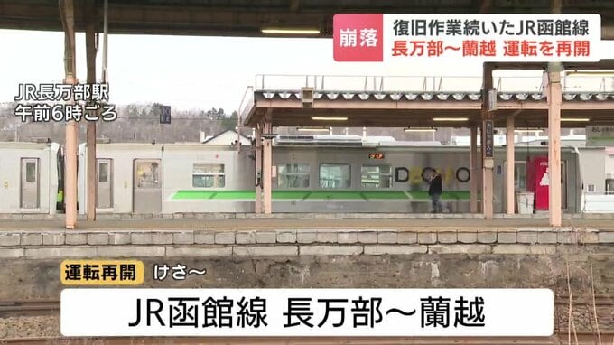 線路わきの盛土が崩落し、復旧作業のため運転見合わせが続いていたJR函館線の長万部と蘭越の間で、13日、運転が再開されました。