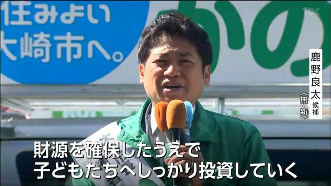 【大崎市長選挙】新人4人立候補し選挙戦スタート 宮城・大崎市 東北放送 2026年4月13日(月) 19:00 国内 鹿野良太候補 鹿野良太候補: 「財源を確保した上で、子供たちへしっかり投資をしていく。さらに医療、介護、福祉、この分野にも投資をしていく。このことがこれから大崎に必要なんではないかというふうに思います」