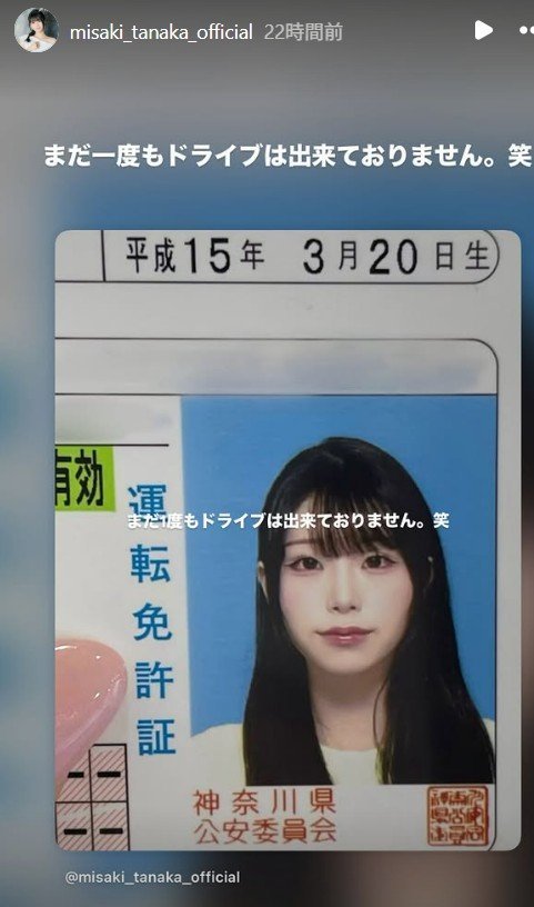 また、インスタグラムのストーリー機能に、田中海咲さんは「まだ一度もドライブは出来ておりません 笑」と記しています。