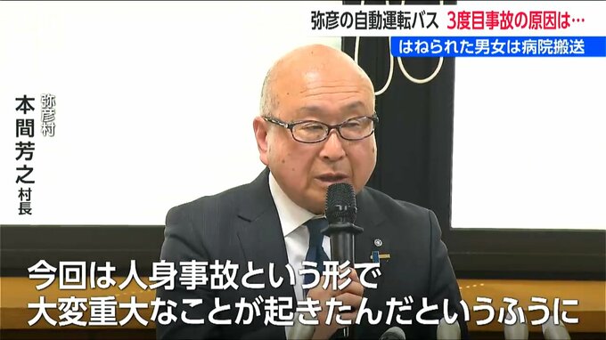 人が多いところでの手動運転への切り替えは、日常的に行っていたということですが、今回の事故の原因について弥彦村の宇野誠地域交通対策室長は「自動運転での道路逸脱っていうのはなかなか考えにくいことを考えると、ヒューマンエラーの可能性が高い」と話しています。