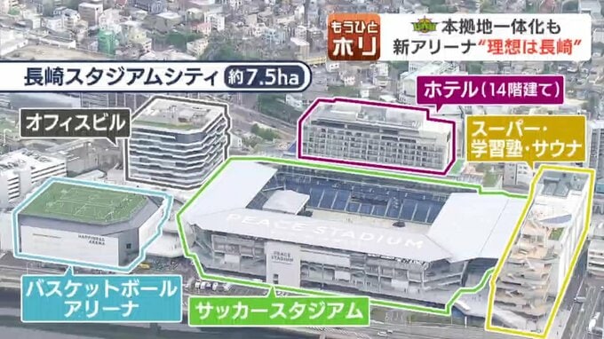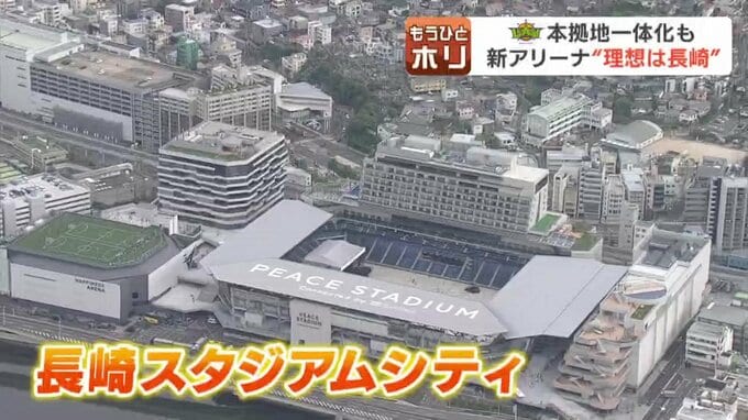 アリーナとサッカー専用スタジアムが一体となった複合施設の建設も検討されています。理想像として挙げているのが、2024年開業した「長崎スタジアムシティ」。