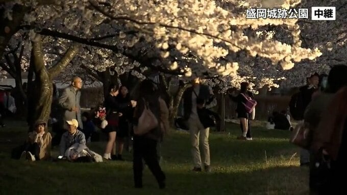 そんな中でも、この時間桜を一目を見ようとやってくる人の姿が多く見られます。