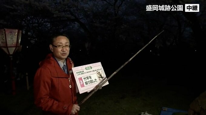 いいですね~ありがとうございます。実は、今ちょっと問題を出していて、この冬にウソという鳥がやってきて、桜の花芽を食べる鳥なんです。どうやって盛岡城跡公園のスタッフの方は追い払ったかという、そういった3択のクイズです