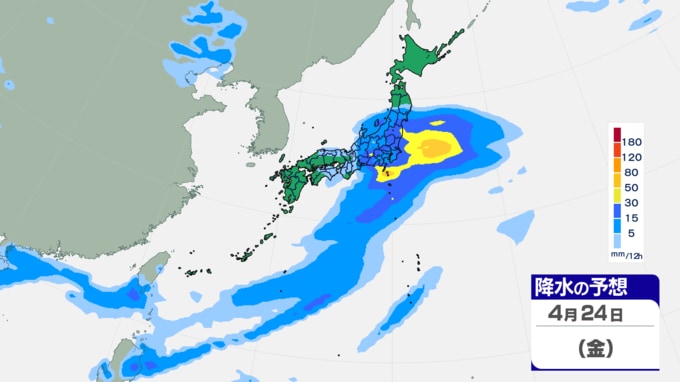 24日までの長期のシミュレーションでも、台風4号は小笠原近海に北上した後、東に進む予想です。23日から24日ごろから西から天気が崩れて、発達した雨雲がy予想されています。