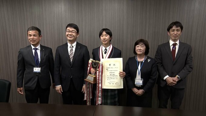 先月(3月)、高校生のバドミントンの全国大会で優勝した倉敷中央高校2年の渡邉柚乃選手が、岡山県の教育長を表敬訪問しました。