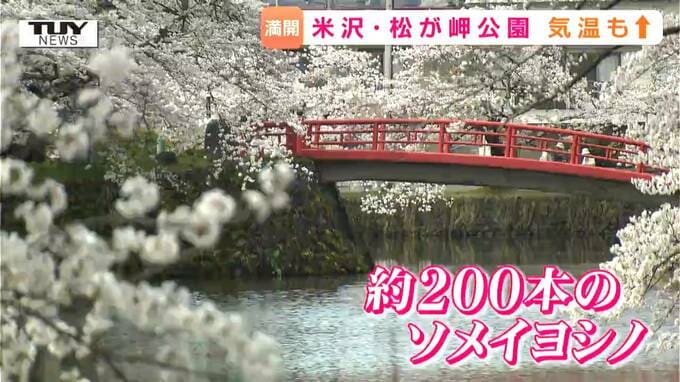 きょう山形県内は気持ちのいい青空が広がりました。多くの地点で気温が20度を超え5月中旬から下旬の陽気となりました。米沢市の松が岬公園の桜は満開となり訪れる人の目を楽しませていました。 米沢市の桜の名…