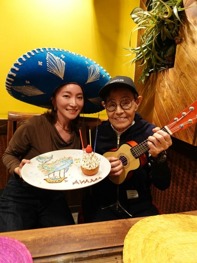 投稿に添えられた写真には、加藤さんが大きな青いソンブレロを頭にのせ、カラフルなロウソクが立った誕生日ケーキを手に笑顔を見せる様子が写っています。そのそばで加藤茶さんがモンクレールのキャップをかぶり、楽しそうにギターを演奏する元気な姿も確認でき、賑やかなお祝いの雰囲気が伝わってきます。