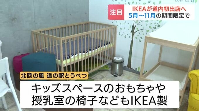 こちらの道の駅では、キッズスペースのおもちゃや、授乳室の椅子、ベビーベッドなど、いたるところにIKEAの商品が。