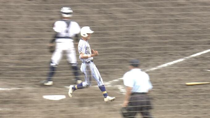 沖縄尚学2番・稲岡蒼斗が4打席連続出塁となる安打を放つと、後続も四球で歩き、二塁一塁のチャンスに、先制打を放った4番玉那覇が三塁線にバント。二塁走者の封殺を狙って打球処理を焦った投手の悪送球を誘い、勝ち越しに成功します。