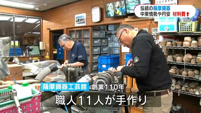 創業110年を迎える薩摩錫器工芸館では、11人の職人が商品を手作りしています。かつて鹿児島は「スズ」の主要な産地でしたが、今は産出量が多い海外からの輸入に頼っています。