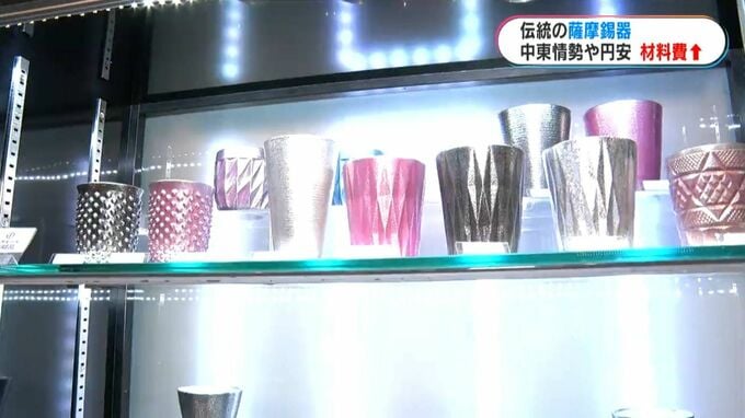 (記者)「こちらにはさまざまな薩摩錫器の製品が並んでいるが、じわじわと中東情勢の影響が及んでいる」