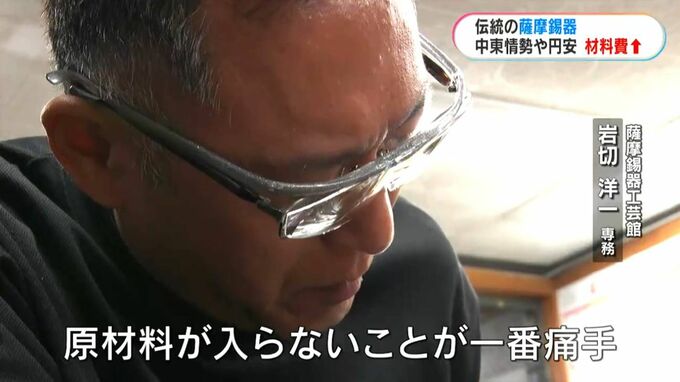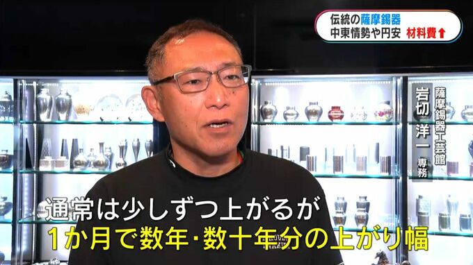 (薩摩錫器工芸館 岩切洋一専務)「通常は少しずつ上がるが、1か月で数年、数十年分の上がり幅。原油が高騰すれば船の燃料代もかかり、価格に転嫁して、(業者から)高くで販売されている」