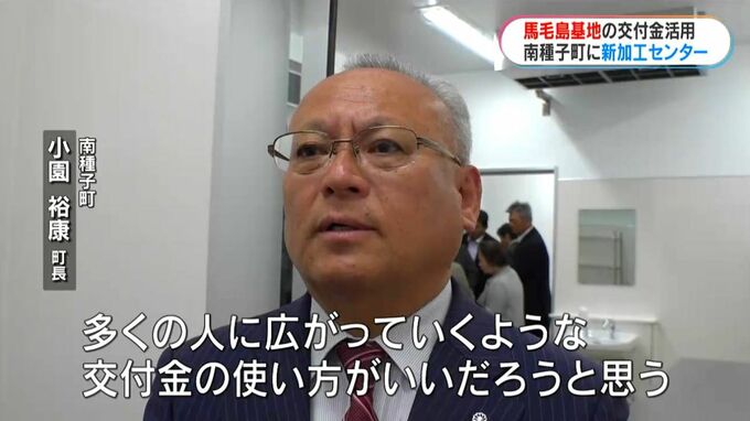 新たに建てられた加工センターの総事業費はおよそ1億4830万円で、このうち3分の1にあたる5000万円あまりに馬毛島基地工事の再編交付金を活用しています。