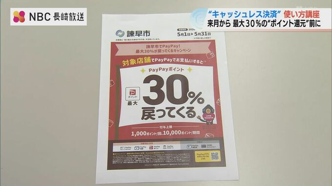 諫早市内の対象店舗でキャッシュレス決済をすれば、市外の人もポイントが還元されるキャンペーンは、5月1日から始まります。