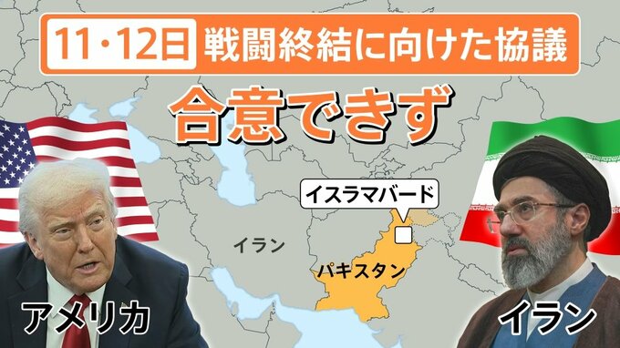 11日・12日にパキスタンのイスラマバードで行われた、アメリカとイランの戦闘終結に向けた協議は21時間に及びましたが、合意には至りませんでした。