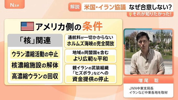 今後について、いまはアメリカもイランも双方が譲歩を求め合っているという状況です。お互いが最大限の条件を突きつけていて、あとはお互いがどこまで譲歩できるのかにかかっていると思います。