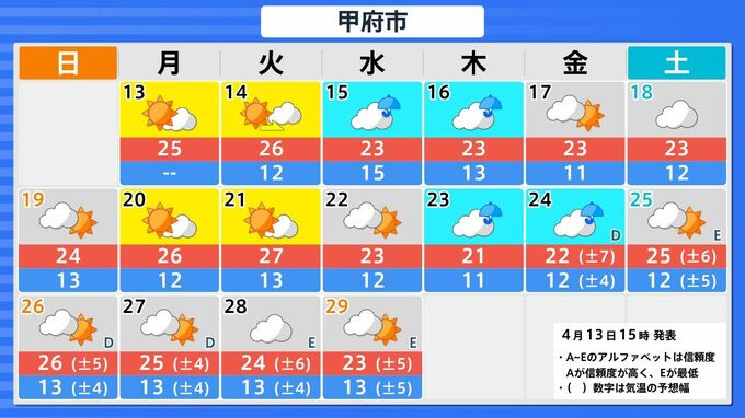 【こと座流星群 2026】 観察のポイント&撮影のコツ【スマホで流星を撮影するには?】観察の計画を立てよう「県庁所在地の16日間天気予報」 南日本放送 2026年4月13日(月) 20:00 国内 天気 観察計画を立てよう 16日間予報(13日(月)~29日(水祝)) 流星群観察の計画を立てましょう。各都道府県の県庁所在地の16日間予報を、画像で掲載しています(北海道は札幌と釧路の2か所)。 この記事を最初から)→ 【こと座流星群 2026】観察の計画を立てよう「何時がいい?・放射点どこ?」