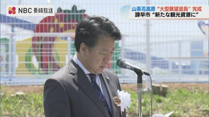 大久保潔重 諫早市長:「この大型展望遊具を新たな観光資源として最大限に活用し、市内外から多くのみなさまに足を運んでもらうことで地域の賑わいの場となるよう努めたい」