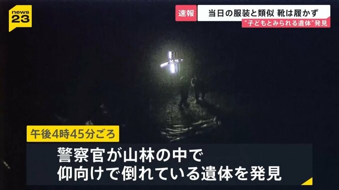 時間は午後4時45分ごろ。警察官が山林の中で、仰向けで倒れている遺体を発見したということです。現時点では性別不明で、遺体の状況については「1日、2日ではない相当な期間が経っている」としています。