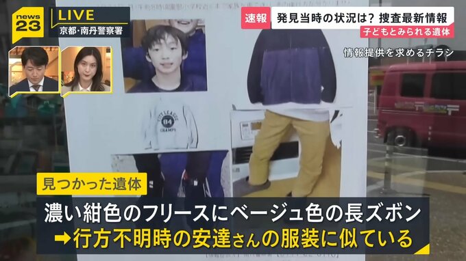 遺体が見つかったのは午後4時45分ごろで、南丹市園部町の山林に仰向けで倒れていたということです。年齢や性別などは分かっていませんが、小柄で子どもの可能性があるということです。
