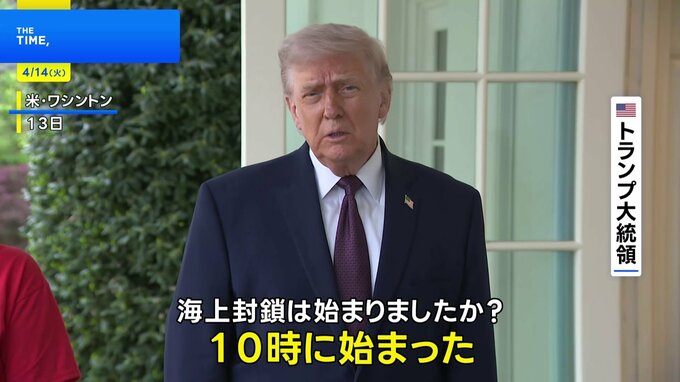 アメリカのトランプ大統領は、イランの港湾に出入りする船舶への封鎖措置を開始したと述べました。アメリカ トランプ大統領「(Q.海上封鎖は始まりましたか?)10時に始まった」トランプ大統領は、アメリカ軍がイ…
