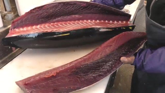 山奥でも品揃えを豊富にするため、自ら朝6時に市場へおもむき、魚を目利き。一匹一匹、見極め、厳選した魚を仕入れているんです。