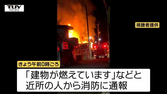 警察によりますと、きょう午前0時ごろ山形市江南で「建物が燃えています」などと近所の人から消防に通報がありました。