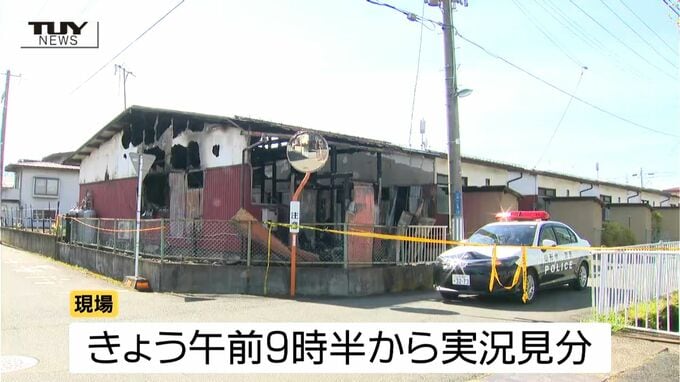 現場ではきょう午前中から実況見分が行われていて、消防と警察が出火原因を調べるとともに遺体の身元の確認を急いでいます。