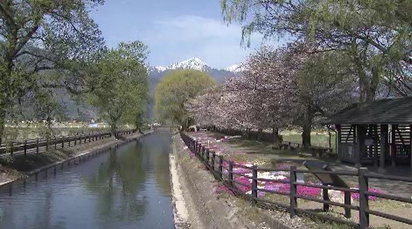 春の安曇野では、残雪の北アルプスを背景に桜やシバザクラが見ごろを迎えています。安曇野市三郷明盛(みさとめいせい)の公園では、「世界かんがい施設遺産」に認定されている農業用水路=拾ヶ堰(じっかせぎ)沿…