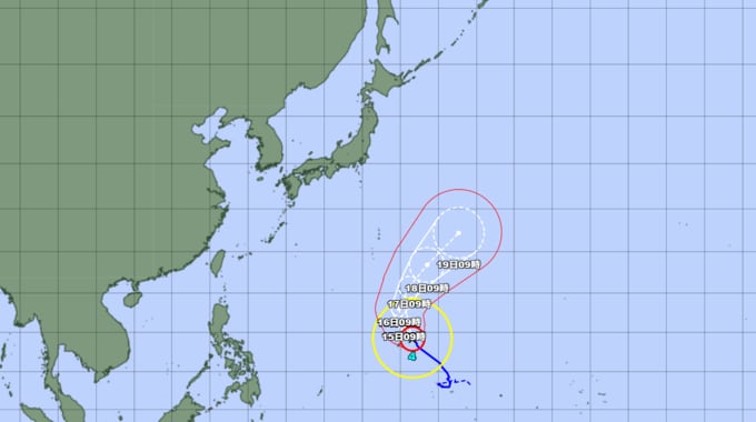 進行方向、速さ 北北東 15 km/h (8 kt)