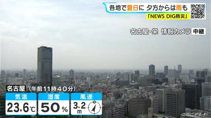 正午前の名古屋市内は、薄い雲が広がっています。名古屋では午前9時半ごろには気温が20℃を超え、日差しのもとでは汗ばむ陽気になっています。