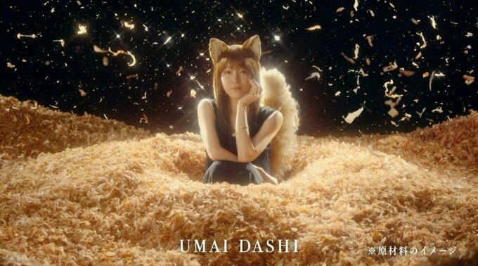 今回のCMでは、「日清のどん兵衛」の人気キャラクター"どんぎつね"が約4年ぶりに復活します。4年前の「さよなら、どんぎつね 篇」では白を基調としたキュートなイメージで視聴者を魅了した"どんぎつね"ですが、今回は黒いドレスを身にまとい、大人の魅力あふれる雰囲気へとイメージチェンジ。「どん兵衛」のかつおだしに欠かせない素材・鰹節に全身で溺れながら、うっとりとした表情を披露しいています。