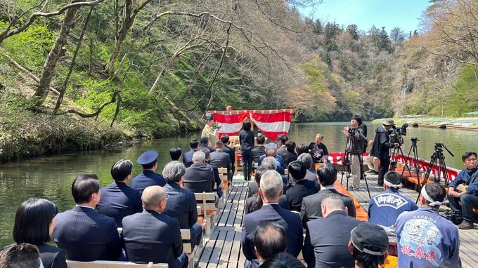 本格的な行楽シーズンを前に「舟下り」で知られる一関市東山町の名勝猊鼻渓で安全祈願祭が行われました。