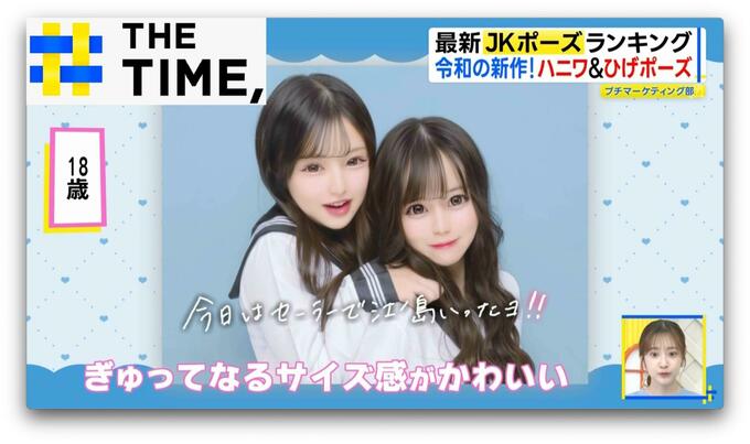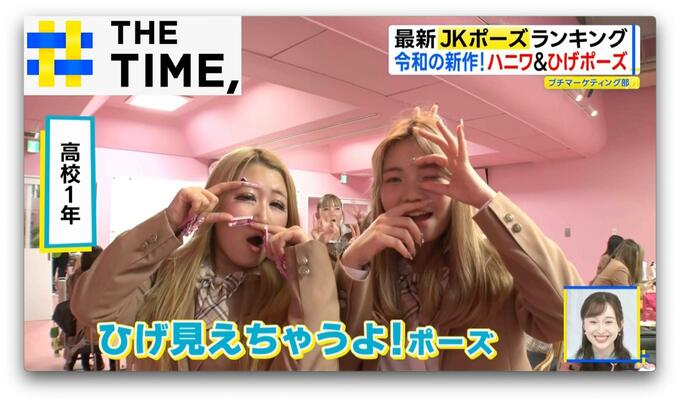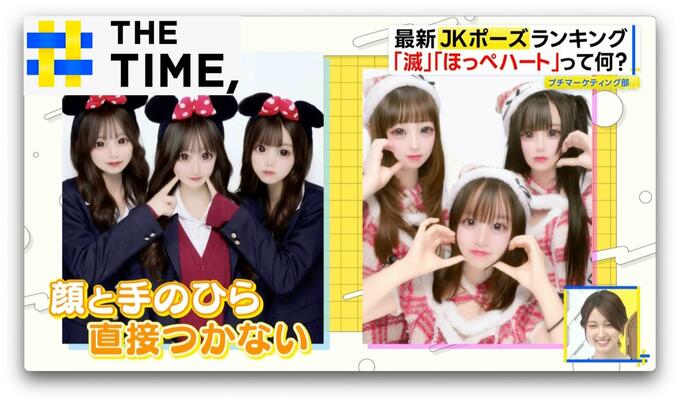さらには、人差し指を横にして鼻の下に添え、もう片方の手の親指と人差し指でCの字を作り目にあてる【ひげ見えちゃうよ!】というのもあったりと多様化するJKポーズですが、実は今ある異変がー