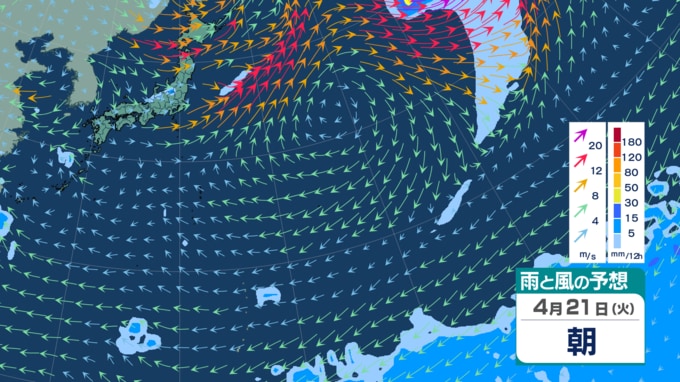 【台風4号情報 14日午後4時過ぎ更新】徐々に右カーブ? 未だ大型で猛烈な勢力の“春の台風” 最大瞬間風速75 m/s・中心気圧920hPa 今後は東へ進路進めるか 最新進路予想や日本への影響は? 雨・風シミュレーション 青森テレビ 2026年4月14日(火) 14:35 国内 【4月21日】雨・風の予想シミュレーション【10日先まであり】 【雨・風の予想シミュレーションをまとめて見る】 (4月14日、15日~16日、17日~18日、19~20日、21日~22日、23日~24日) 【この記事を最初から読む】